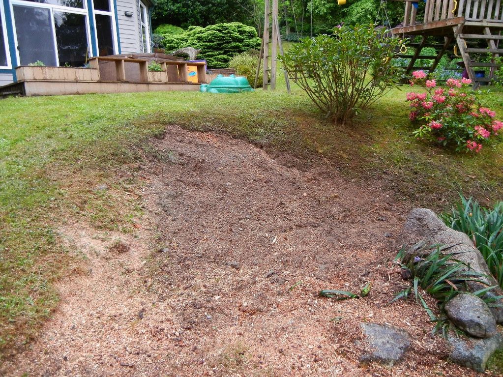 ....ground the stump & then moved the chips elsewhere on the property. (Port Ludlow)